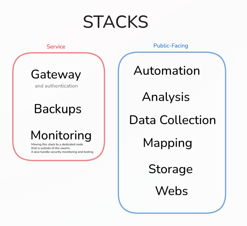 I have structured it in functional stacks for organization and isolation: